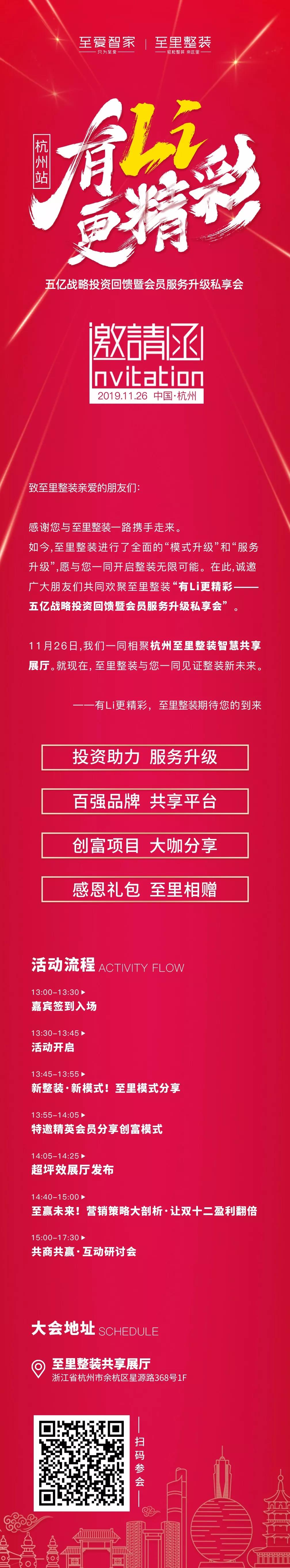 为回馈广大会员对平台的支持,11月26日至爱智家于杭州至里整装共享展厅举办“有Li更精彩”---五亿战略投资回馈暨会员服务升级私享会。届时,行业专家、家居从业者将汇聚于杭州至里整装共享展厅,助力装企提升整装运营能力,探讨整装产业新未来!