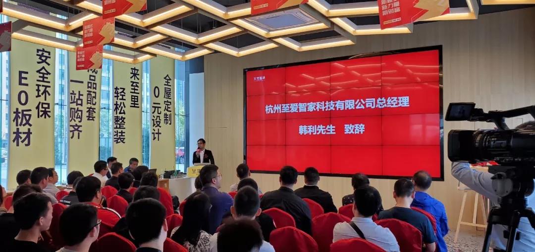 其后,杭州至爱智家总经理韩利先生上台致辞,对此次至爱整装馆的开业表示出极大的信心,以及对整装行业的支持和信任。